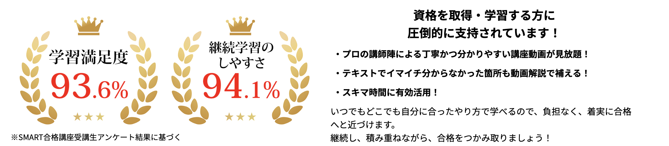 短期間で確実に合格を目指したい方は、ぜひSMART合格講座の活用を検討してみてください。